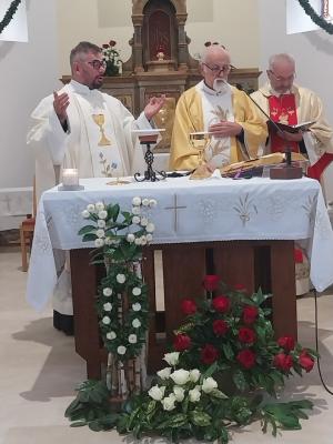 Jubilejno mašo je vodil zlatomašnik Vili Hribernik iz Dolenec, somaševala pa sta srebrnomašnik Tibor Tóth iz Gornjega Senika in stalni diakon Robert Časar iz Sakalovec.
