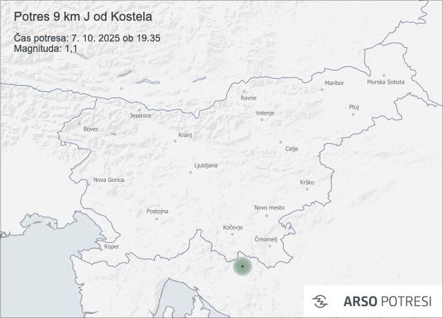 V torek, 7. oktobra 2025, ob 19.35 po lokalnem času so seizmografi zabeležili šibek potres z nadžariščem približno 9 kilometrov južno od Kostela. Po podatkih samodejne analize je imel potres magnitudo 1,1.