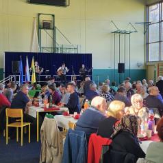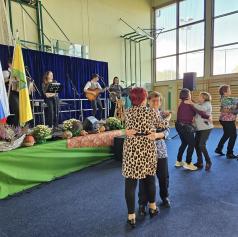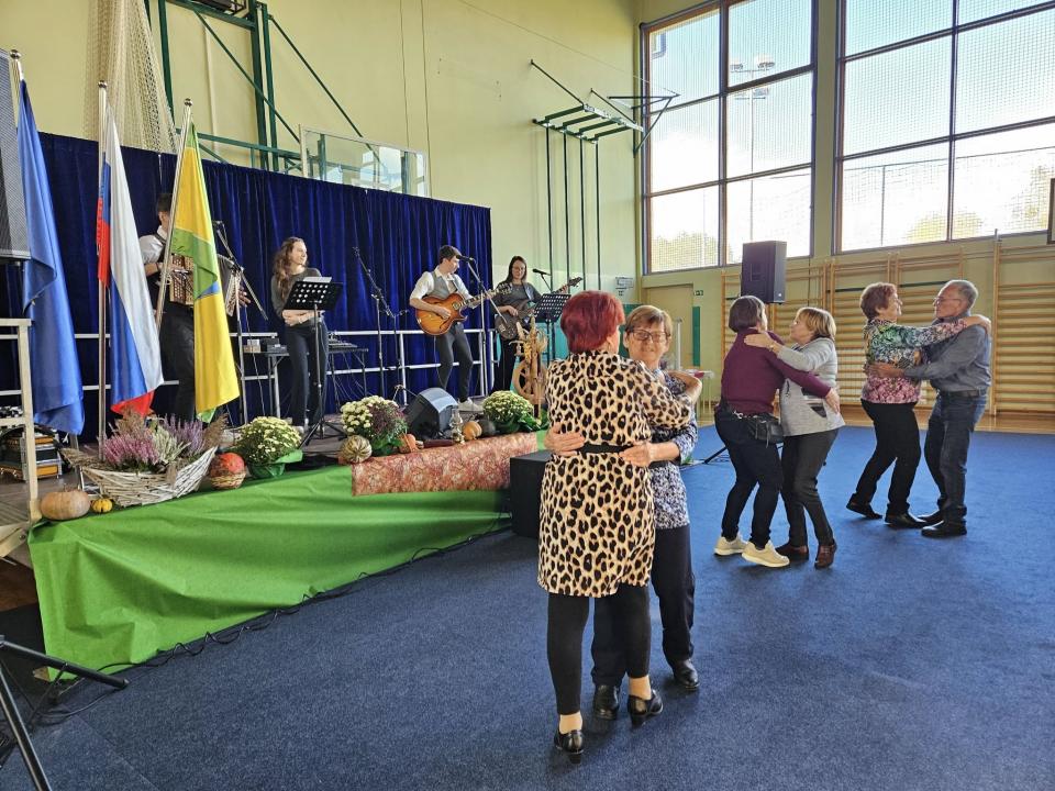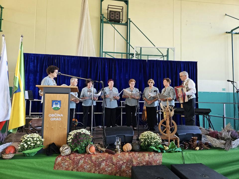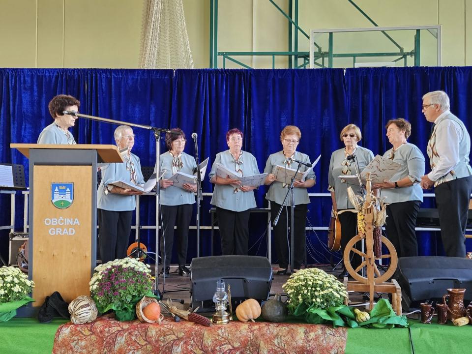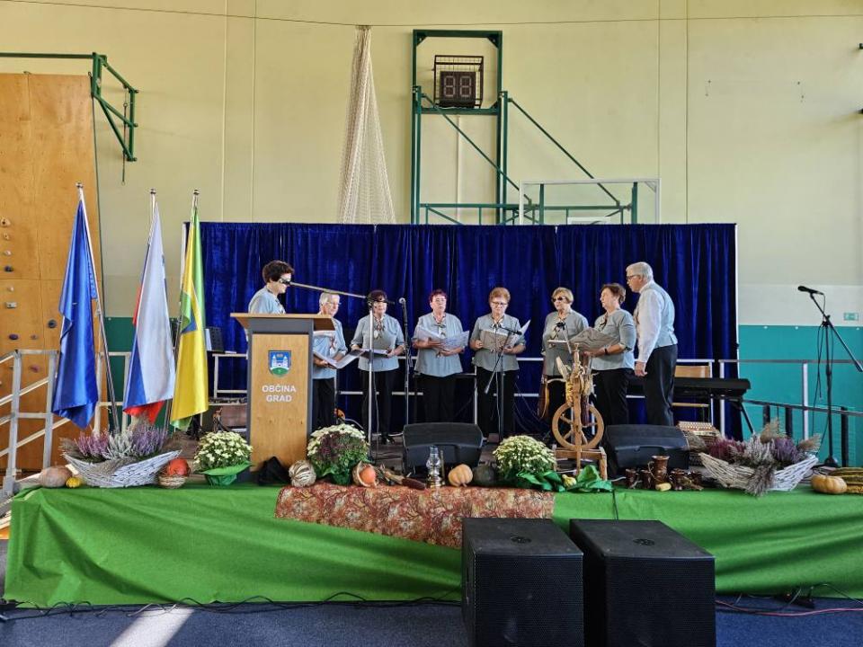 Dogajanje so popestrili tudi člani Pevske skupine Društva upokojencev Grad, ki so s pesmijo v dvorano prinesli občutek domačnosti in radosti. Za glasbeno spremljavo in dobro razpoloženje je poskrbel Ansambel Fekonja, ki je s svojimi melodijami ustvaril sproščeno in veselo vzdušje.