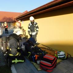 Na dvorišču Hiše gibanice in v njeni okolici so gasilci razporedili gasilska vozila in položili gasilske cevi. Ob tem so se lotili tudi gašenja sončne elektrarne na enem od objektov, s poudarkom na tem, kako se pravilno in varno pristopi k gašenju sončne elektrarne. Gašenje sončne elektrarne za gasilce predstavlja večjo nevarnost. Gasi se s curkom vode z ročnikom C, gasilca pa morata biti več kot pet metrov oddaljena od požara sončne elektrarne. Vsak operativni gasilec mora biti pri gašenju sončne elektrarne primerno oblečen, na glavi mora imeti gasilsko čelado, saj se sproščajo zelo strupeni plini in podobno.