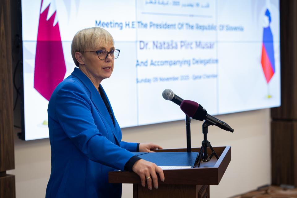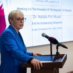 Predsednica Nataša Pirc Musar se je danes, prvi dan dvodnevnega uradnega obiska v Katarju, udeležila slovensko-katarskega poslovnega foruma v Dohi. V nagovoru gospodarstvenikom obeh držav se je zavzela za okrepitev sodelovanja in ustvarjanje novih poslovnih priložnosti.