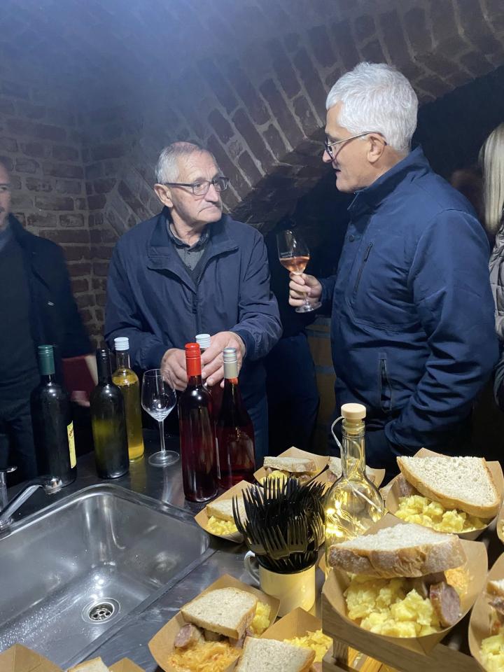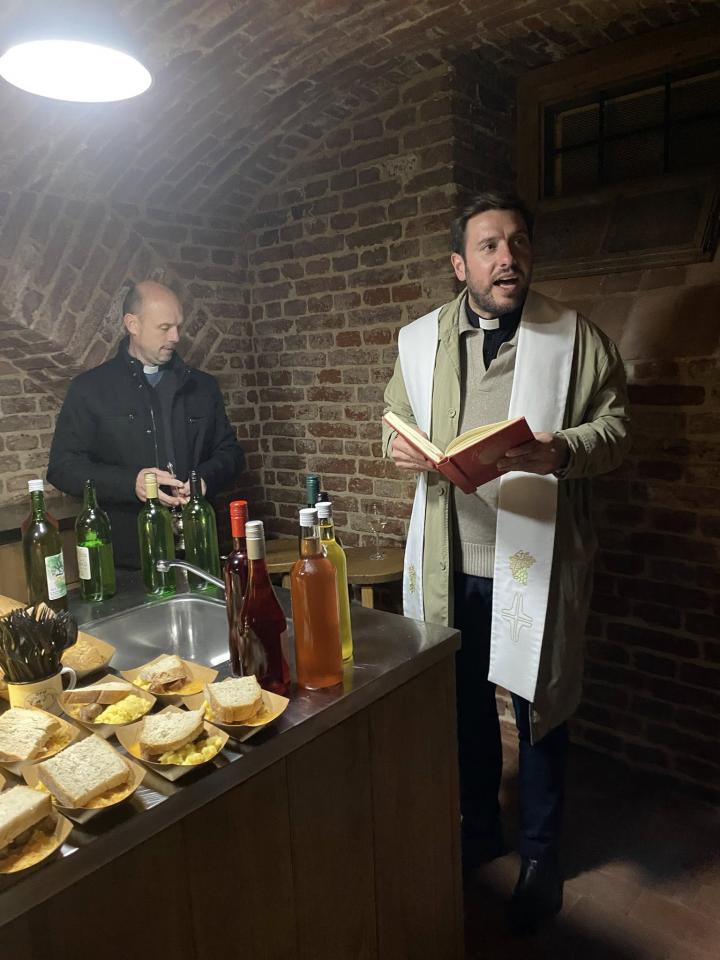 Po duhovnem delu dogodka je sledil še blagoslov vina v kleti stare šole. Domači vinarji Vina Petek, Vina Černel, Vina Senekovič, Vina Mlinarič in Vina Čuš so pripravili degustacijo mladih vin, ki so jih obiskovalci lahko preizkusili neposredno iz njihovih klet.