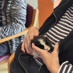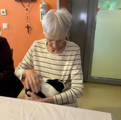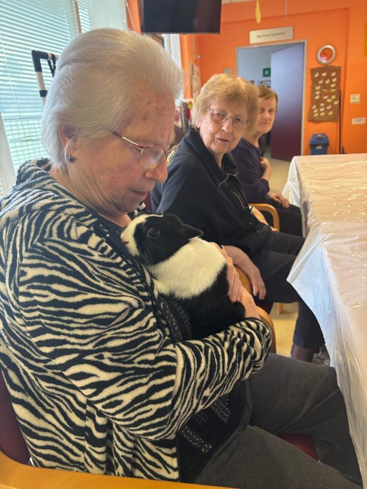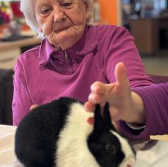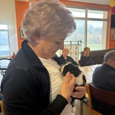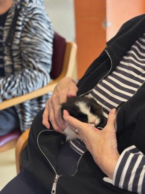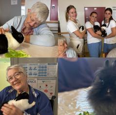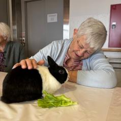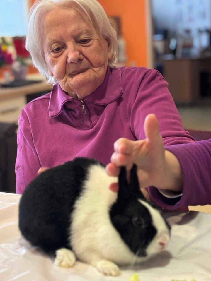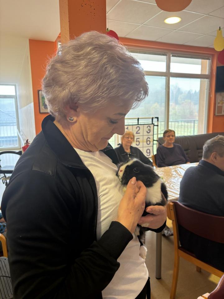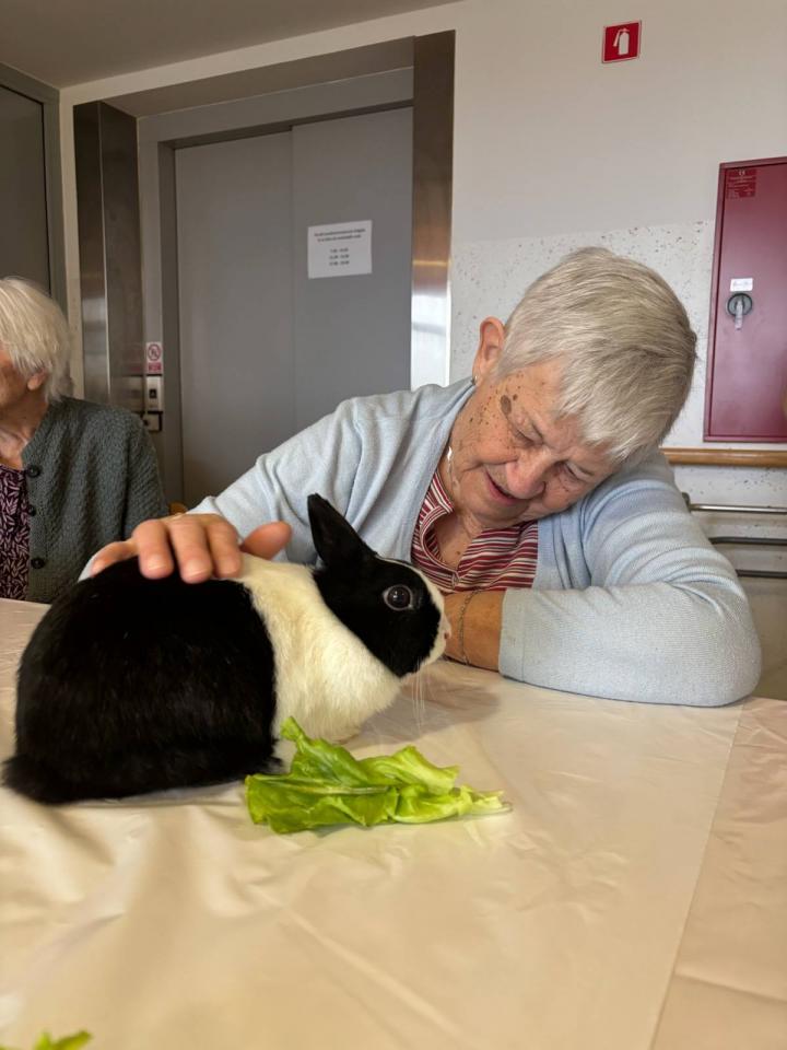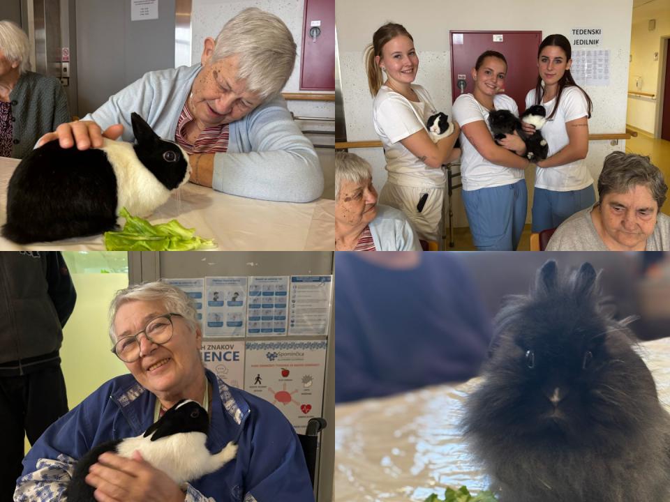 Dom so obiskali puhasti zajčki, ki jih je pripeljala Tina, ki je zaposlena v domu. Njihova navzočnost je v prostor vnesla občutek miru, nežnosti in sproščenosti, ki ga lahko pričarajo le živali.
