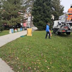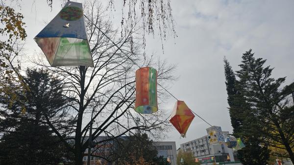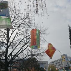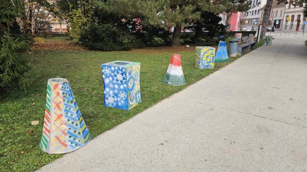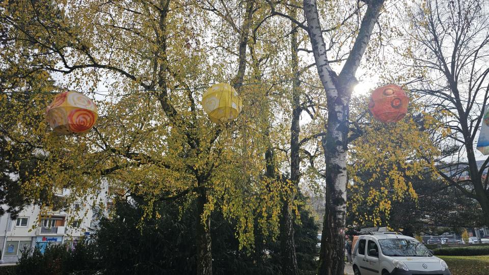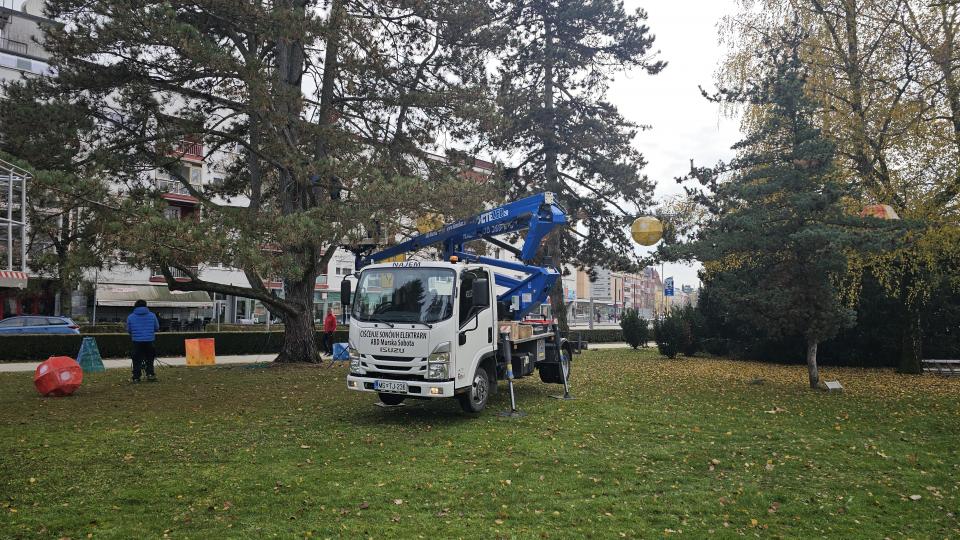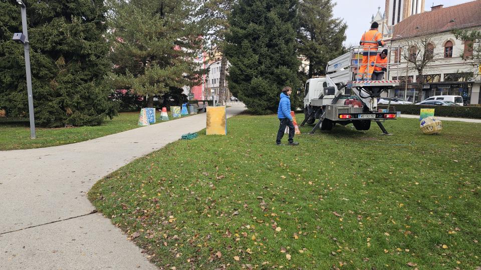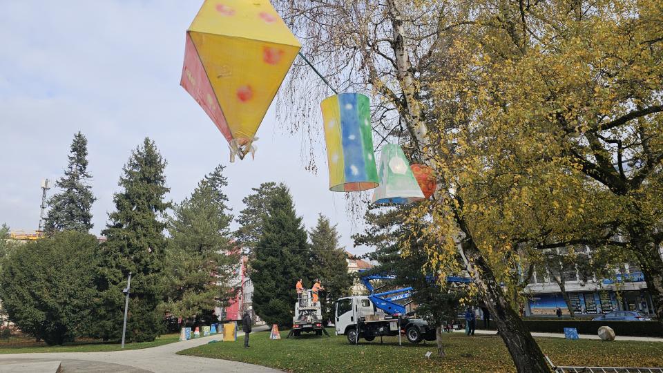 Na Trgu zmage v Murski Soboti danes nameščajo pisane lampijone, s čimer se nadaljujejo priprave na veseli december.