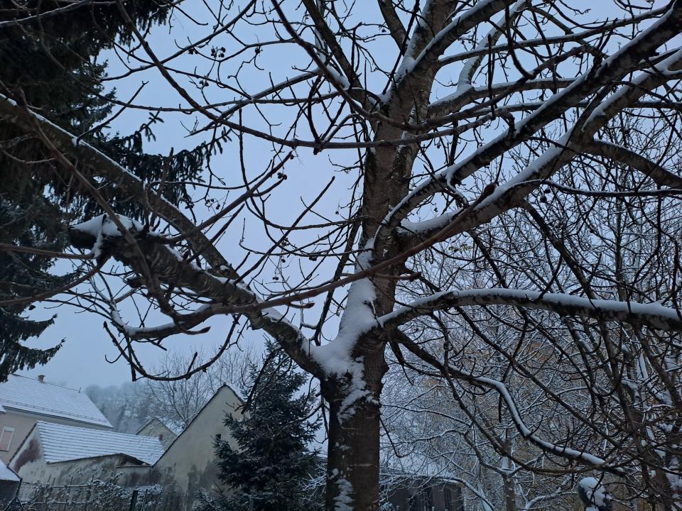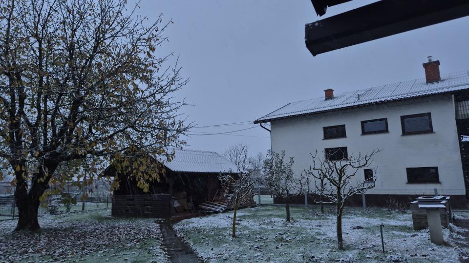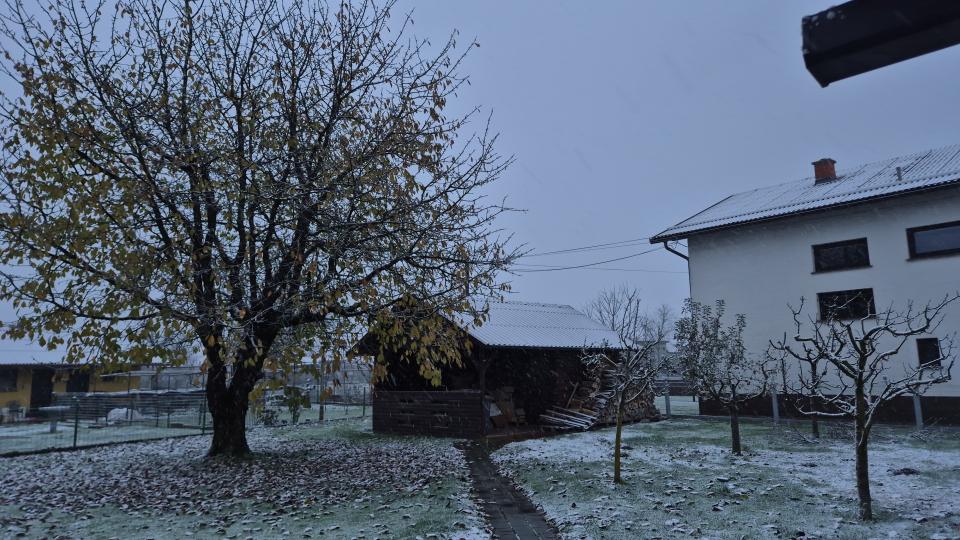 V Murski Soboti še vse zeleno, ponekod po Pomurju nekaj milimetrov snega, napovedan je mraz in nova priložnost za snežinke.