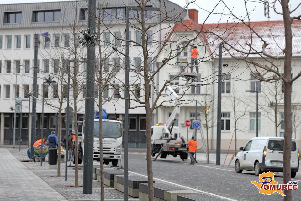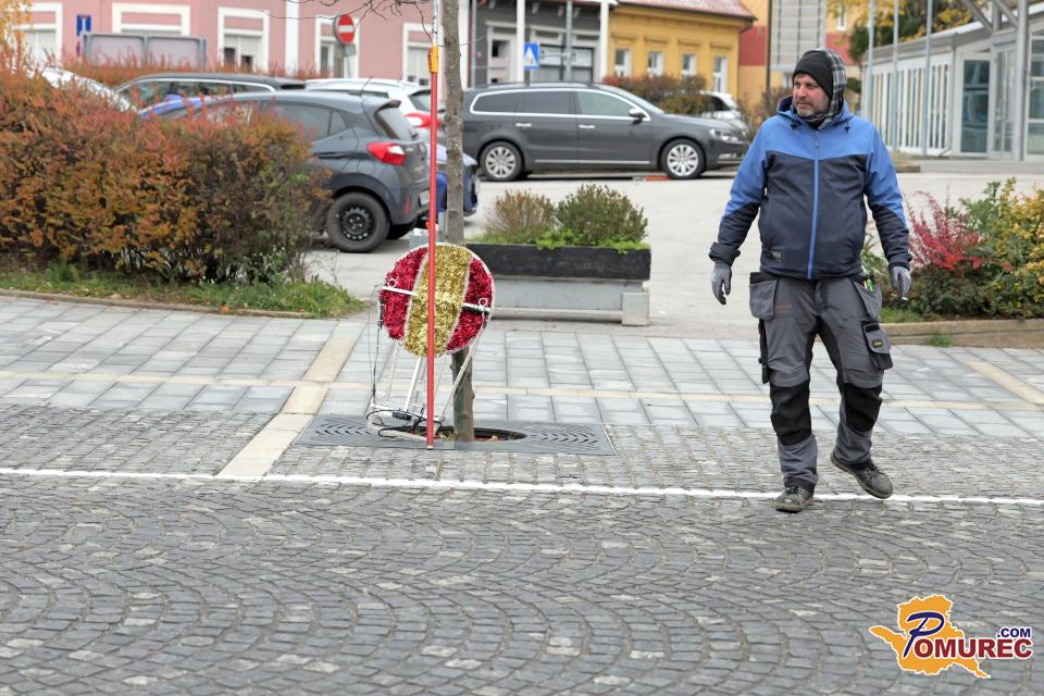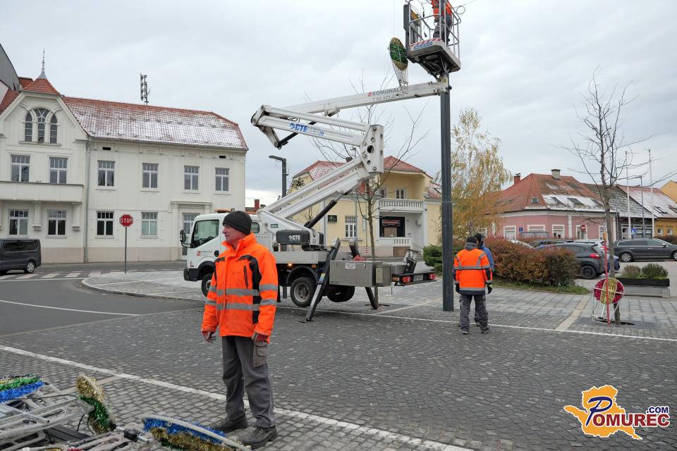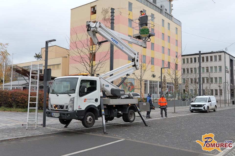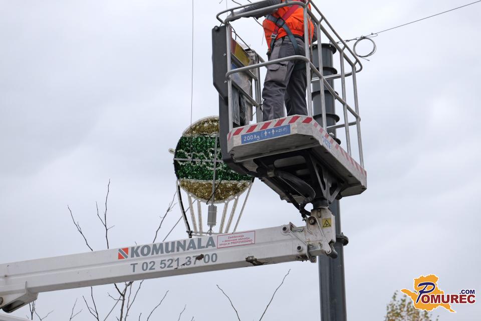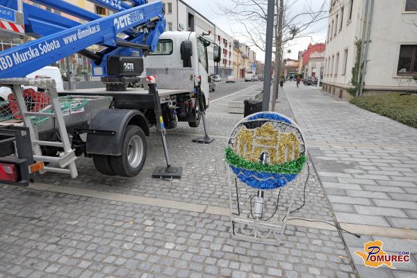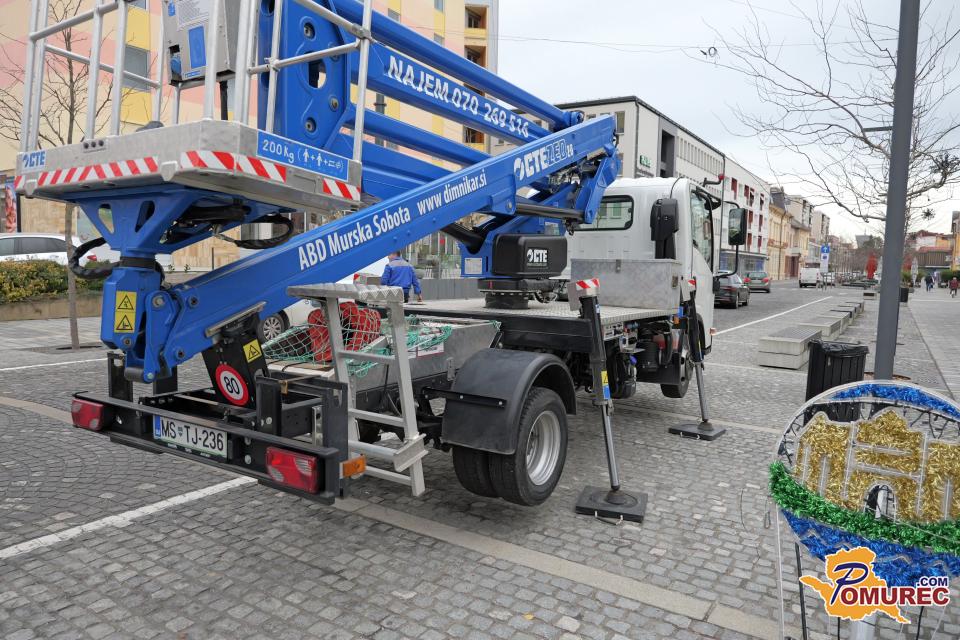V središču Murske Sobote se tudi danes nadaljuje nameščanje praznične okrasitve, s katero mesto napoveduje skorajšnji prihod prazničnega decembra.