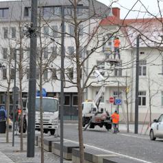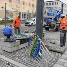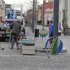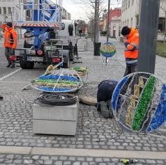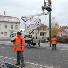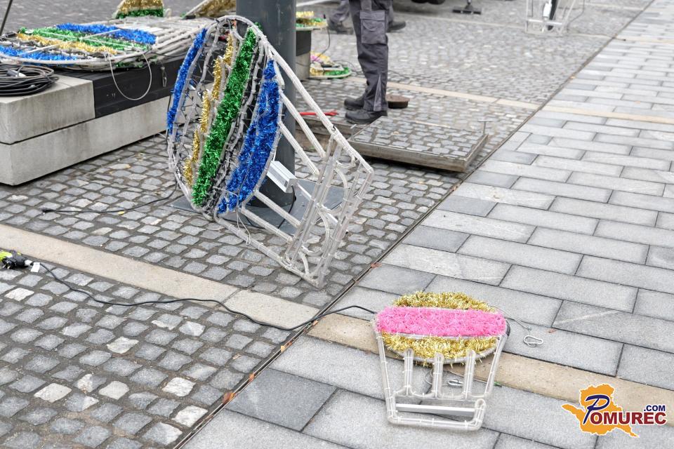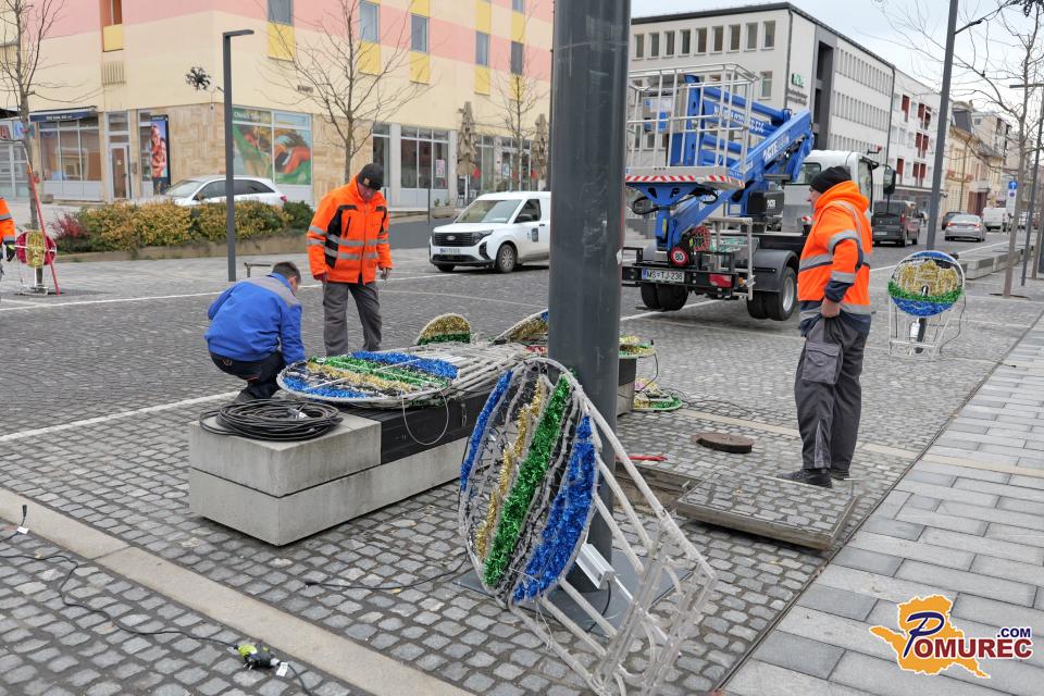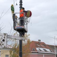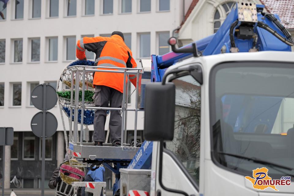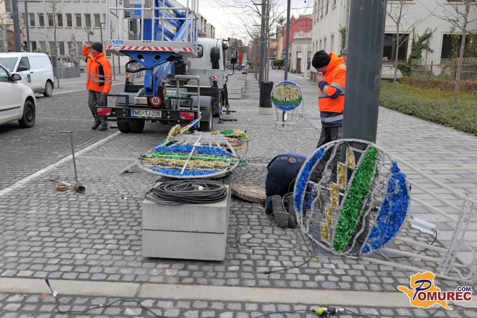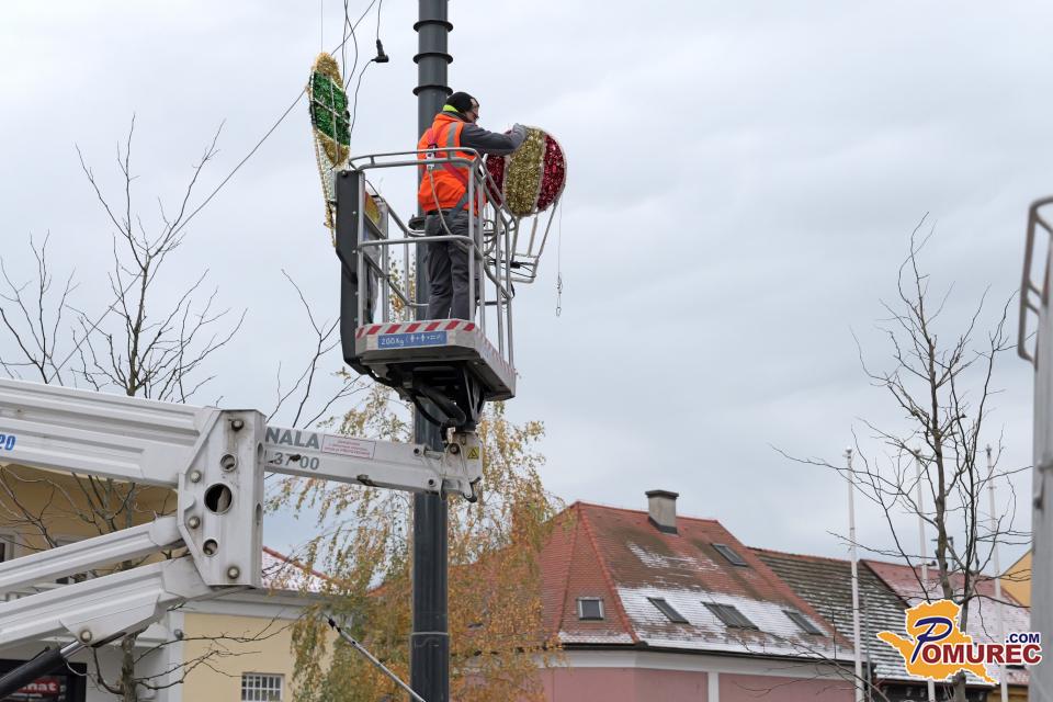 V središču Murske Sobote se tudi danes nadaljuje nameščanje praznične okrasitve, s katero mesto napoveduje skorajšnji prihod prazničnega decembra.