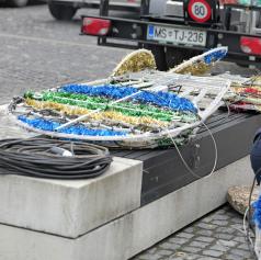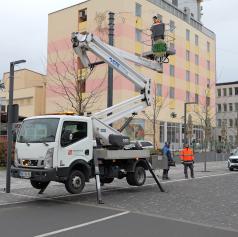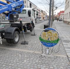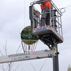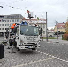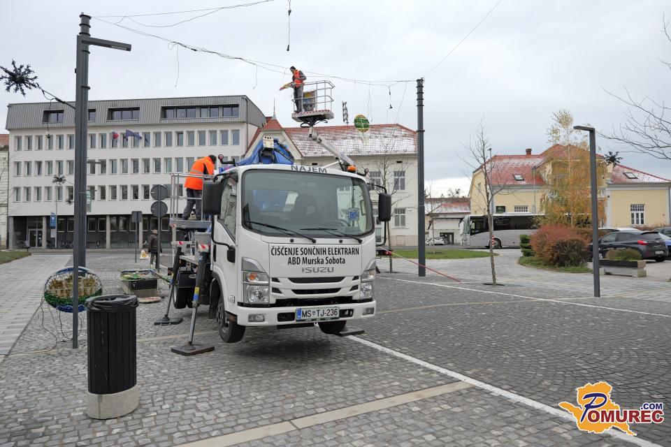 FOTO: V Murski Soboti nameščajo praznično okrasitev