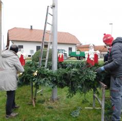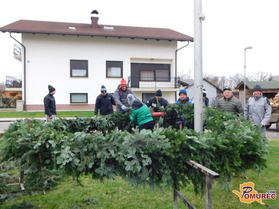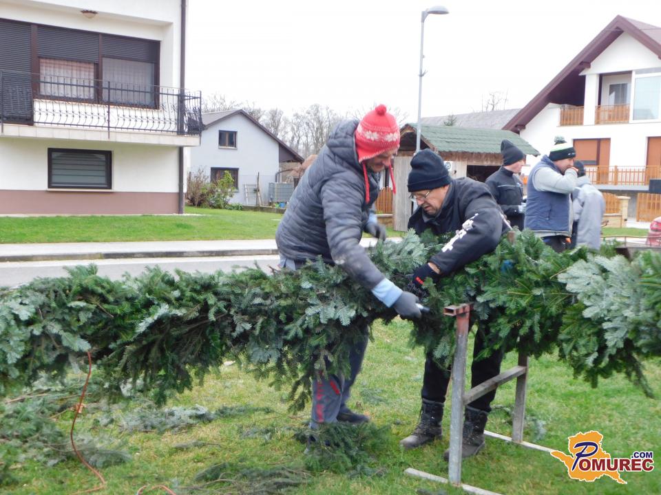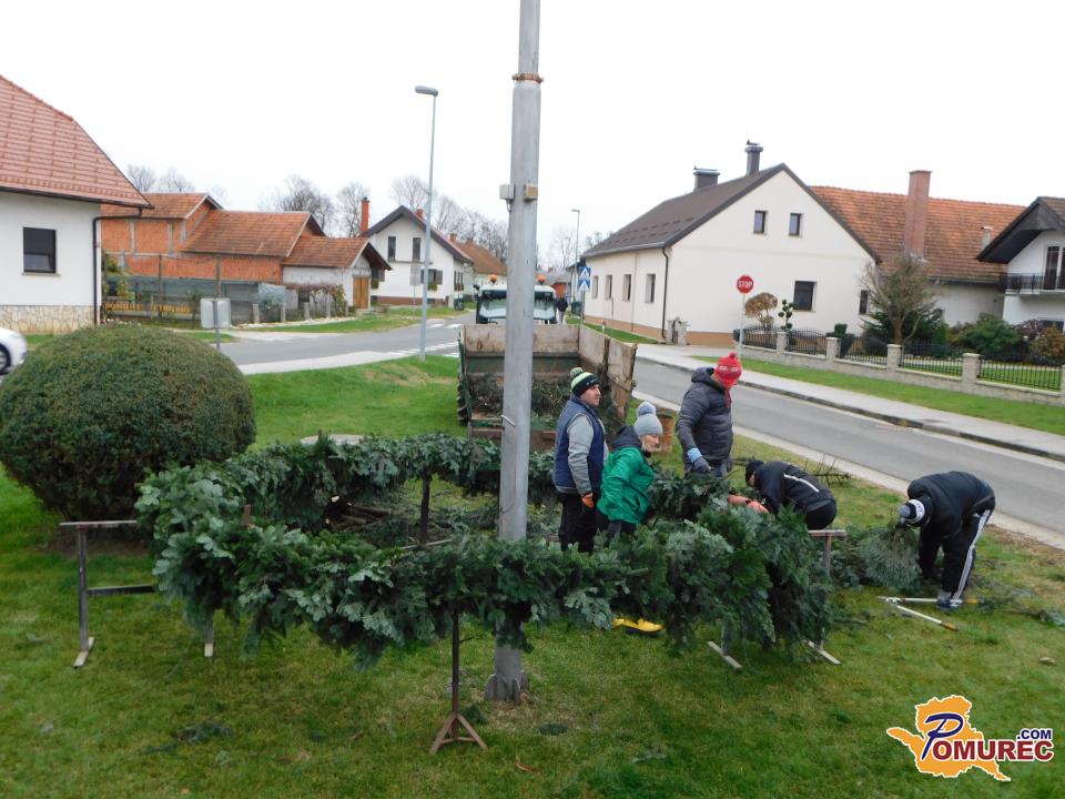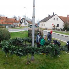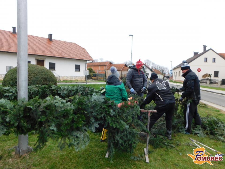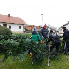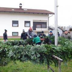 Pred pričetkom pletenja so najprej postavili močno železno ogrodje, ki so ga namestili okoli kandelabra v središču vasi. Nato so s traktorsko prikolico pripeljali sveže smrečje iz bližnjega gozda, ga razrezali na manjše veje in se lotili zahtevnega ročnega dela. Vejice so natančno polagali eno ob drugo, jih sproti ovijali z žico in s tem oblikovali mogočen venec.