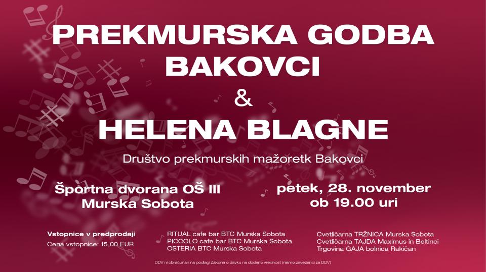 Prekmurska godba Bakovci pripravlja glasbeni večer z legendarno Heleno Blagne