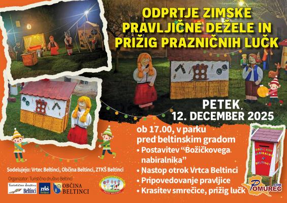 Na Gradu Beltinci se bo ob 18. uri začelo Odprtje zimske pravljične dežele in slovesni prižig prazničnih lučk.