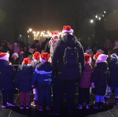 Osrednji trenutek večera je bil prihod Dedka Mraza, ki so ga otroci pričakali z navdušenjem in radovednostjo. Njegov prihod je v mestni park prinesel toplino, veselje in občutek skupnosti, ki zaznamuje praznični čas.