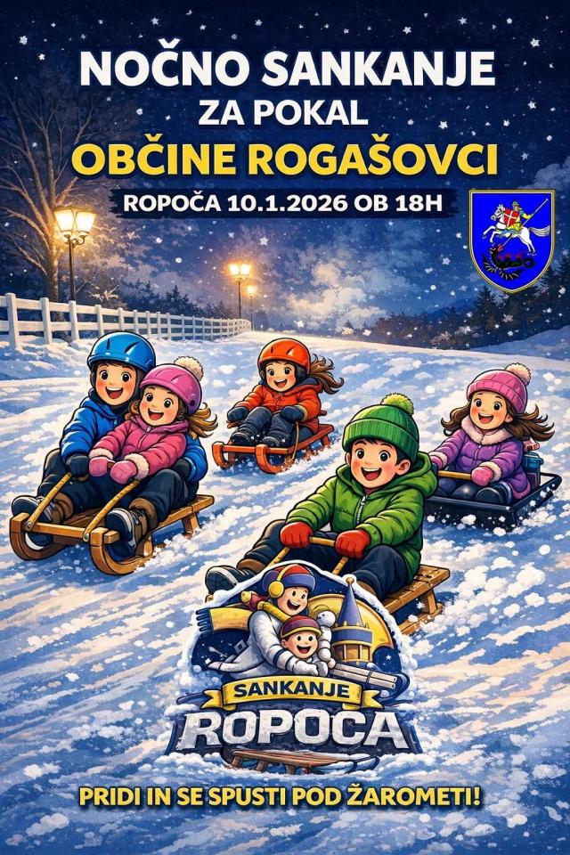Prostovoljno gasilsko društvo Ropoča vabi na nočno sankaško tekmovanje za pokal občine Rogašovci, ki bo v soboto, 10. januarja 2026, ob 18. uri. Dogodek obljublja obilo zabave, adrenalina in druženja za vse generacije, saj se bodo na zasneženi progi pomerili tako otroci kot starejši, posebna atrakcija večera pa bo tekmovanje s pležuhi.