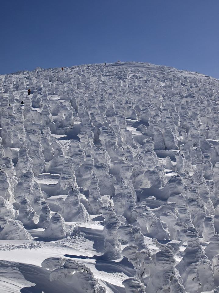 Tako imenovane snežne pošasti niso bitja, temveč drevesa, ki jih v gorah Japonske prekrijejo debele plasti ledu in snega. Nastanejo zaradi zmrzovanja superohlajenih vodnih kapljic, rezultat pa so dramatične, skoraj pravljične oblike.