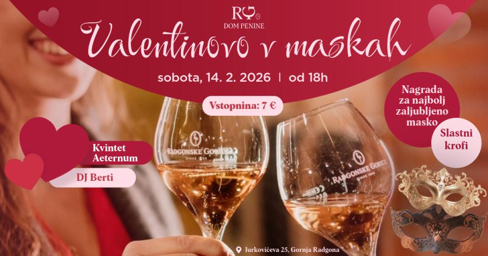 Večer se bo začel ob 18. uri in obiskovalcem ponudil romantično-pustno vzdušje, kjer bodo maske simbol igre, skrivnosti in veselja. Ob kozarcu radgonske penine, dobri glasbi in sproščenem druženju bodo gostje lahko uživali v večeru, ki presega klasično praznovanje Valentinovega.