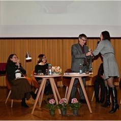 Pogovor je povezovala dr. Bojana Marič Veit, ki je poudarila, da sta kultura in glasba odprli razmislek o zasvojenosti, zlasti o alkoholu. Avtorja že desetletja pomagata posameznikom, parom in družinam, da se izvijejo iz primeža alkohola in zaživijo bolj polno življenje. Ob tem sta opozorila, da je razumevanje alkoholizma nujno celostno, biološko, psihološko in socialno, ter da je zdravljenje mogoče.