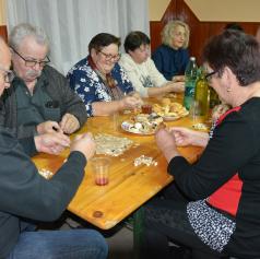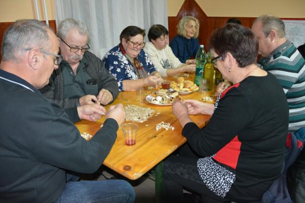 Po končanih opravilih so ob domači glasbi zapeli nekaj domačih in ljudskih pesmi, nato pa so vsi skupaj sedli za skupno mizo, kot ena velika družina. Organizatorji so vse zbrane postregli z bogato večerjo, na kateri niso manjkale domače kulinarične dobrote, domače pecivo, kruh z zaseko ter vino iz bližnjih vinogradov.