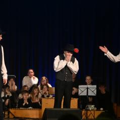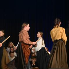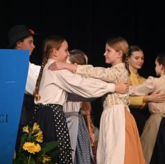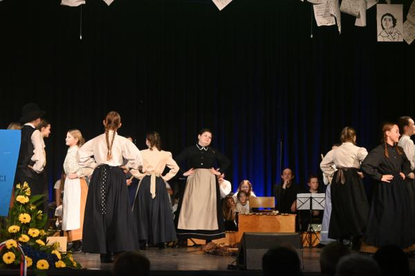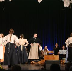 Otroški pevski zbor ter starejša in mlajša Orffova skupina so predstavili venček prekmurskih pesmi in uprizoritev otroške pesmi Labod, s čimer so poudarili pomen narečja kot živega dela slovenskega jezika. Posebno mesto je imela avtorska poezija učencev 9. razreda, ki so v svojih besedilih razmišljali o domovini, iskanju odgovorov in osebnem ponosu.