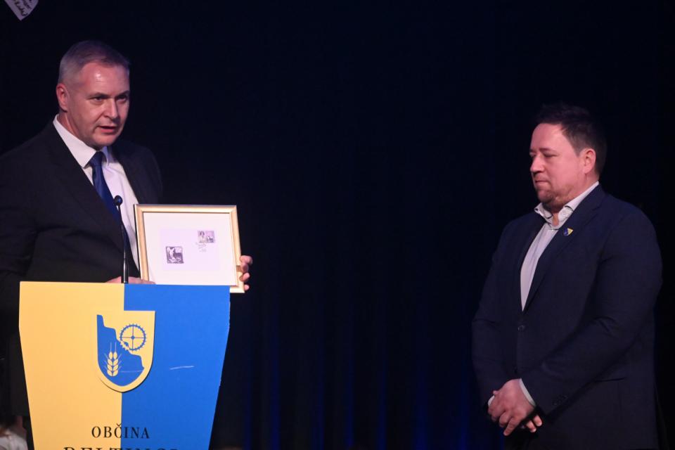 Ob tej priložnosti je županu Marku Viragu simbolično izročil eno prvih poštnih znamk z likom Zofke Kveder. »Ker vaš župan ve, kaj so strpnost, spoštovanje in dialog, je prav, da sprejme eno od prvih znamk te velike Slovenke – kot župan občine, ki je pomembno središče slovenske kulture,« je poudaril.