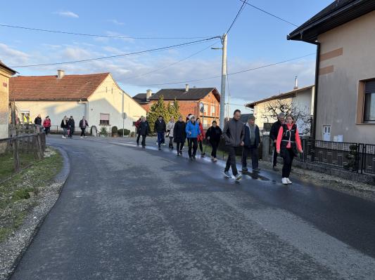 Od tam so pohodniki po zavitih uličicah nadaljevali pot v smeri Gornje Bistrice, proti Melincem, nato med polji do domače imenovanega »Joušja«, vse do cilja pri Športno-rekreacijskem centru Jame, kjer so jih pričakali pohodniška malica in okrepčilo.