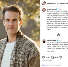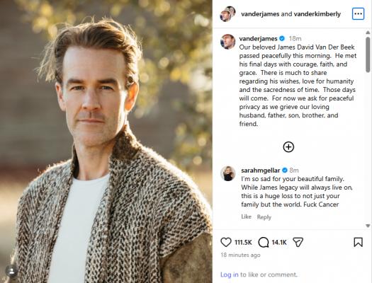 Ameriški igralec James Van Der Beek, zvezdnik serije Dawson’s Creek, je umrl v starosti 48 let.