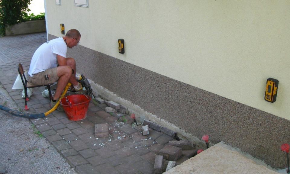 Poseg izvedejo v treh korakih: Skozi temelj najprej naredijo vrtine, v katere vgradijo posebne cevi; skozi te v naslednjem koraku injektirajo raztezno smolo Geoplus. Smolo vgradijo neposredno pod temelje in vse do potrebne globine.