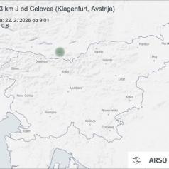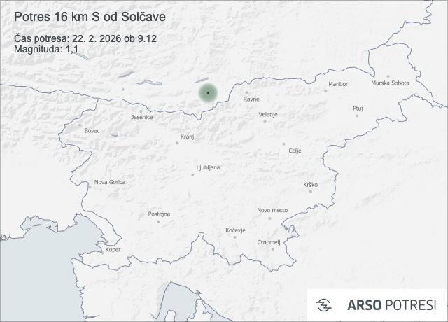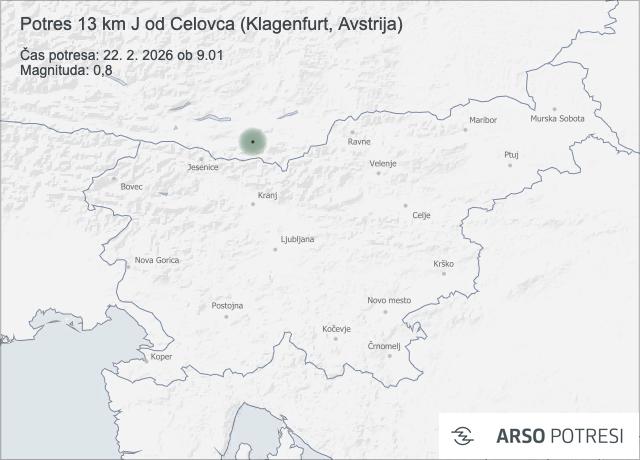 Seizmografi državne mreže potresnih opazovalnic so danes, 22. februarja 2026, zabeležili dva šibka potresna sunka.