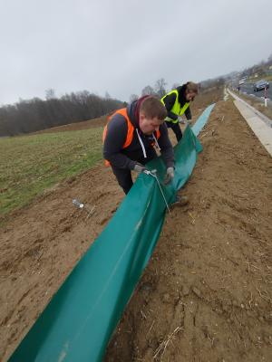 Ukrep sta februarja izvedla Javni zavod Krajinski park Goričko in Občina Rogašovci v okviru projekta Obnova in povezovanje kopenskih habitatov in mokrišč na Goričkem. Povozne ovire so postavili na severni občinski cesti LC 354031 Ropoča ob Ledavskem jezeru.