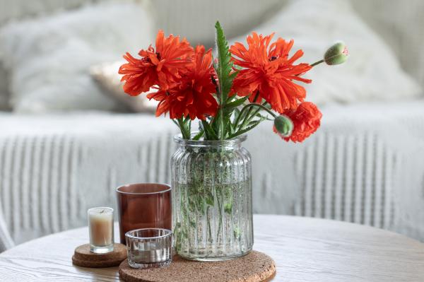 Naslednji ključni dejavnik je voda. Vaza mora biti pred uporabo temeljito oprana, saj se v ostankih umazanije in vodnega kamna hitro razvijejo bakterije. Prav te so najpogostejši razlog, da cvetje začne predčasno veneti. Vodo je priporočljivo menjati vsak dan ali vsaj vsak drugi dan, ob tem pa je smiselno tudi sprati stebla in jih po potrebi znova nekoliko prirezati. Sveža voda zagotavlja boljši pretok hranil in zmanjšuje možnost razvoja mikroorganizmov, ki mašijo stebla.