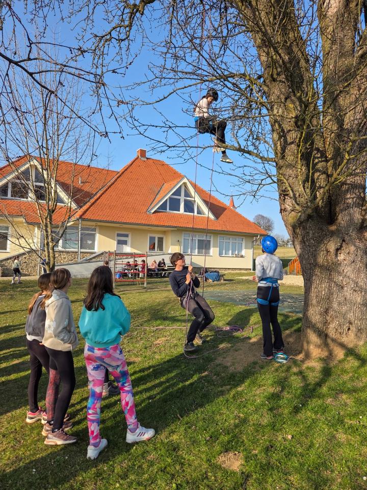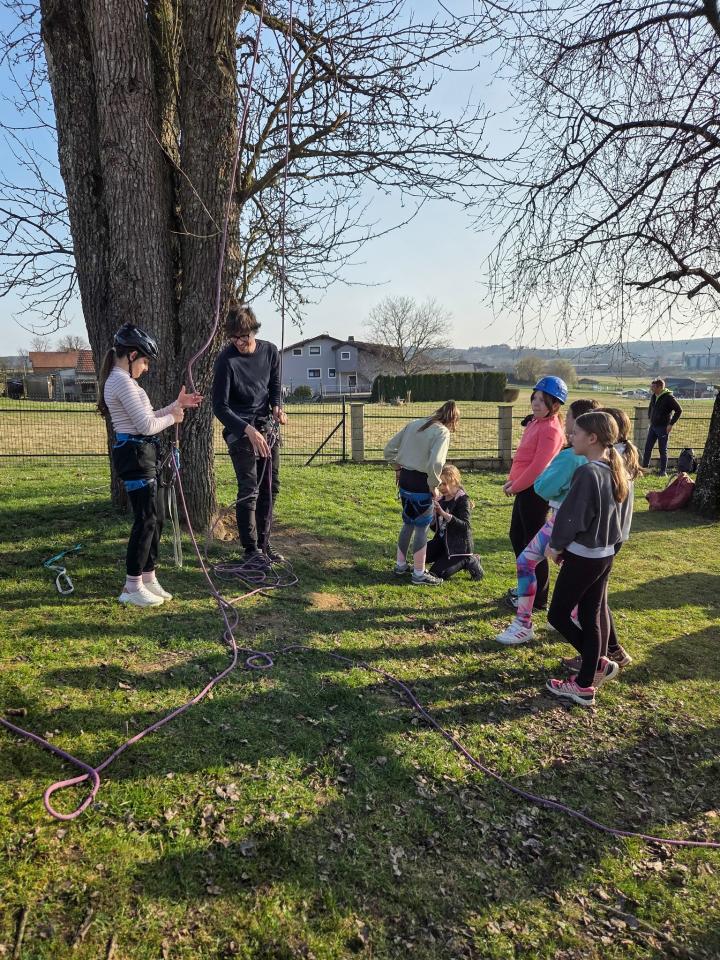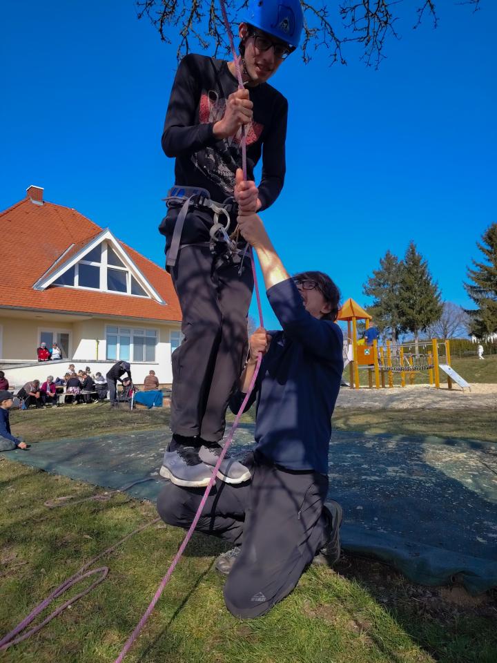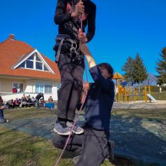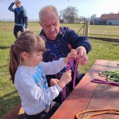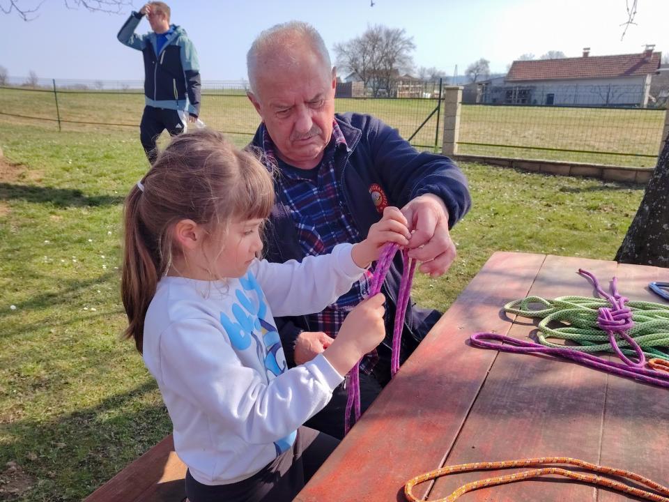 Popoldanski del srečanja je bil namenjen druženju in spoznavanju planinskih veščin. Udeleženci so se preizkusili v družabnih in socialnih igrah, risali planinske markacije, se učili zavezovanja vozlov ter spoznali varovalno tehniko z vodniškimi vrvmi.