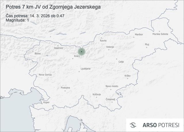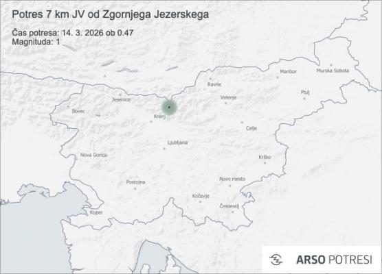 Seizmografi so v noči na 14. marec 2026 ob 0.47 zabeležili šibek potres v bližini Zgornjega Jezerskega. Nadžarišče potresa je bilo po prvih podatkih 7 kilometrov jugovzhodno od Zgornjega Jezerskega.