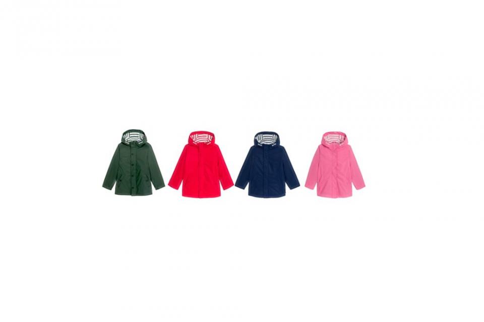 Gre za otroške vodoodporne jakne s kapuco v več barvah – zelena, rdeča, modra in roza. Jakne spadajo v kategorijo oblačil, tekstila in modnih izdelkov.