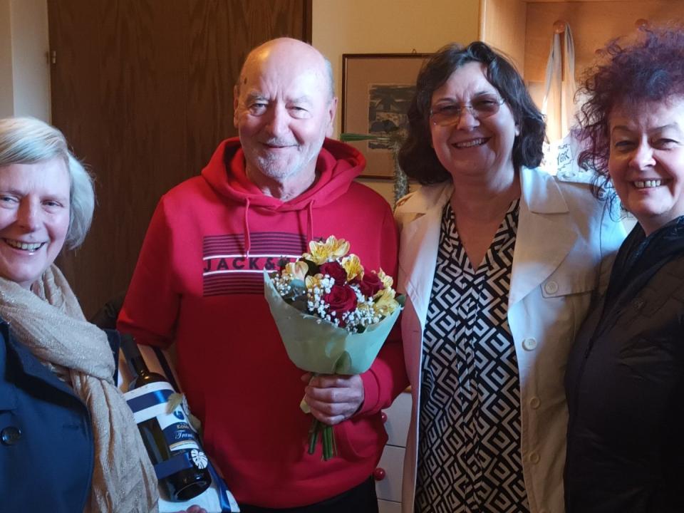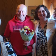 Že navsezgodaj zjutraj so ga pričakale knjižničarke, s katerimi je v letih dela prehodil številne zanimive poti. Ob tej priložnosti so mu zapele in ga obdarile s cvetjem, s čimer so želele izraziti spoštovanje in hvaležnost za skupna leta sodelovanja.