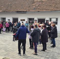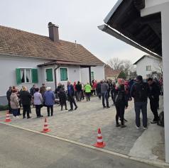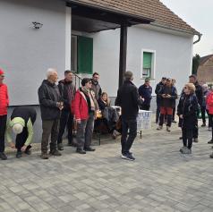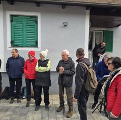 Zbiranje udeležencev je bilo pred rojstno hišo dr. Avgusta Pavla, kjer so pohodniki opravili prijavo, si privoščili zajtrk in prisluhnili pozdravnemu nagovoru.