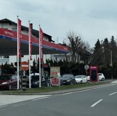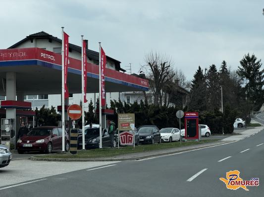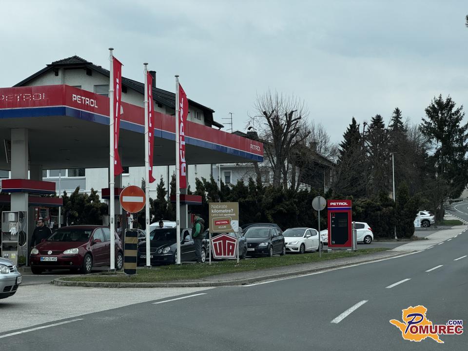 FOTO: Kolona vozil pred Petrolom v Svetem Juriju na Goričkem