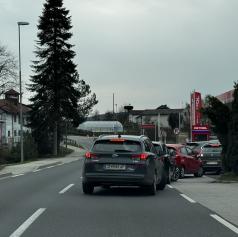 Pred bencinskim servisom Petrol v Svetem Juriju na Goričkem se vije kolona vozil. Po besedah bralca vozila ne stojijo le na območju servisa, temveč segajo tudi na cesto, kar vpliva na pretočnost prometa.