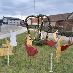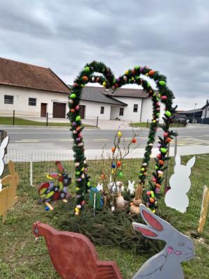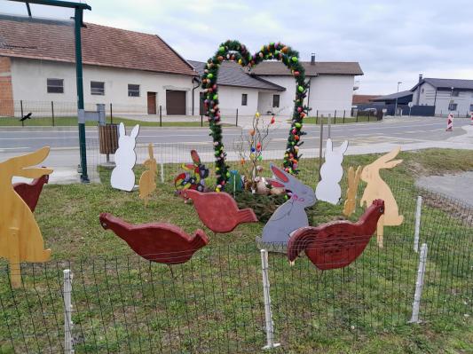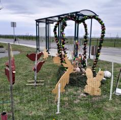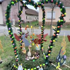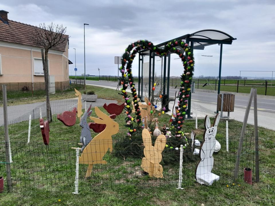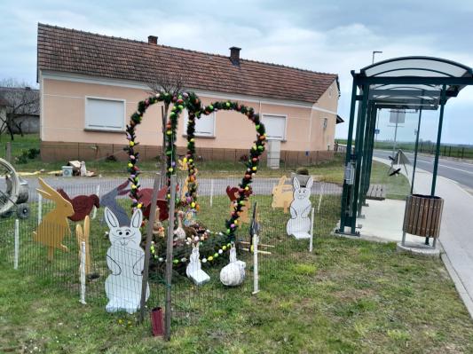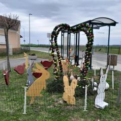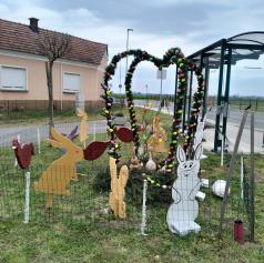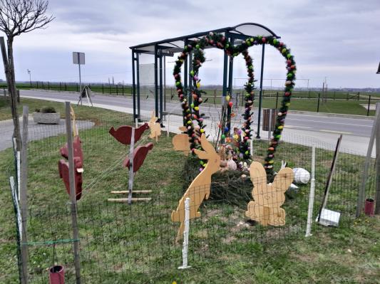 Pred velikonočnimi prazniki so člani Kolesarsko-pohodniškega društva Pedal Gomilica v občini Turnišče v središču vasi Gomilica ob avtobusnem postajališču postavili privlačno velikonočno dekoracijo.
