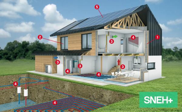 Za tiste, ki želijo še več, je tu koncept SNEH+. Ta z dodatnimi ukrepi energetske učinkovitosti porabo energije za ogrevanje zniža pod 15 kilovatnih ur na kvadratni meter na leto. Ob nadgradnji s sončno elektrarno lahko hiša sama proizvede električno energijo, potrebno za svoje delovanje.