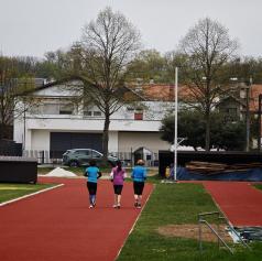 Za izziv, ki ga je začela že v jutranjih urah, predvideva, da bo trajal nekaj več kot pet ur. Izbrala je stadion, kjer lahko ohranja enakomeren ritem, obenem pa preizkusi tudi novo tekaško podlago.
