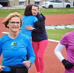 Pri izzivu ni ostala sama. Na stadionu so se ji pridružile tudi druge tekačice, Smilja bo z njo pretekla 52 kilometrov. Ob progi pa jo spremljajo prijatelji in sodelavci, ki jo bodrijo in ji dajejo dodatno energijo. Dogajanje se odvija na atletskem stadionu pri Osnovni šoli I v Murski Soboti, kjer se je Nataša na dolge razdalje pripravljala že v preteklosti.