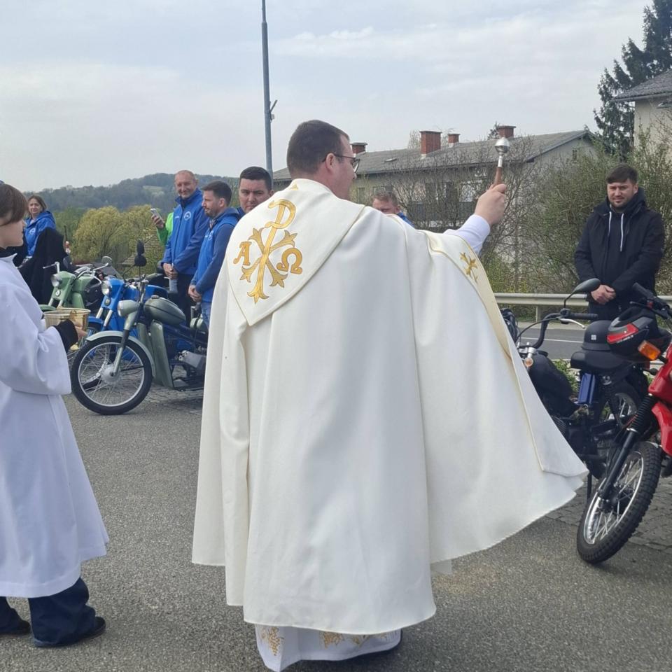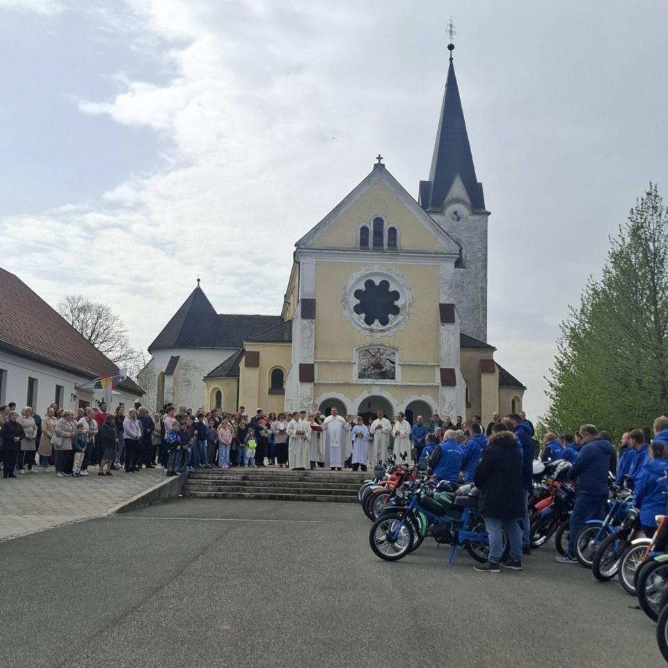 V nedeljo, 12. aprila 2026, so se člani sekcije Tomos Riders Goričko zbrali pri cerkvi v Svetem Juriju, kjer je potekal blagoslov mopedov, motorjev in njihovih voznikov.