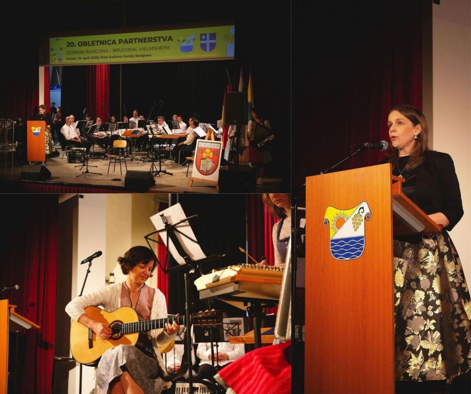 V petek, 10. aprila 2026, so v Domu kulture Gornja Radgona s slavnostnim koncertom obeležili pomemben jubilej - 20 let uradnega partnerskega sodelovanja med Občino Gornja Radgona ter mestom Bruchsal in mestno četrtjo Helmsheim.