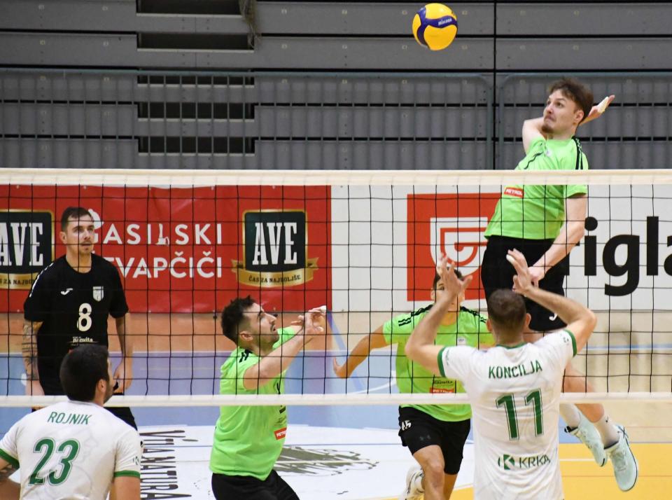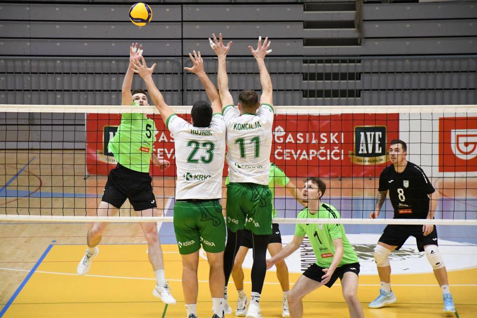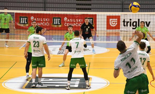 Kljub temu se domači niso predali. Četrti niz so dobili prepričljivo s 25:18 in izenačili na 2:2, a v odločilnem petem nizu niso zdržali pritiska. Krka je bila v končnici zbranejša in slavila s 15:13.