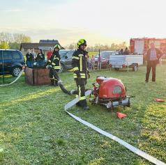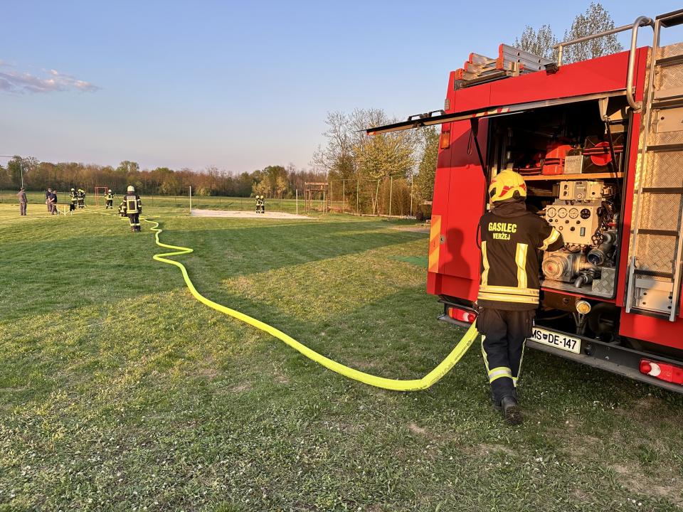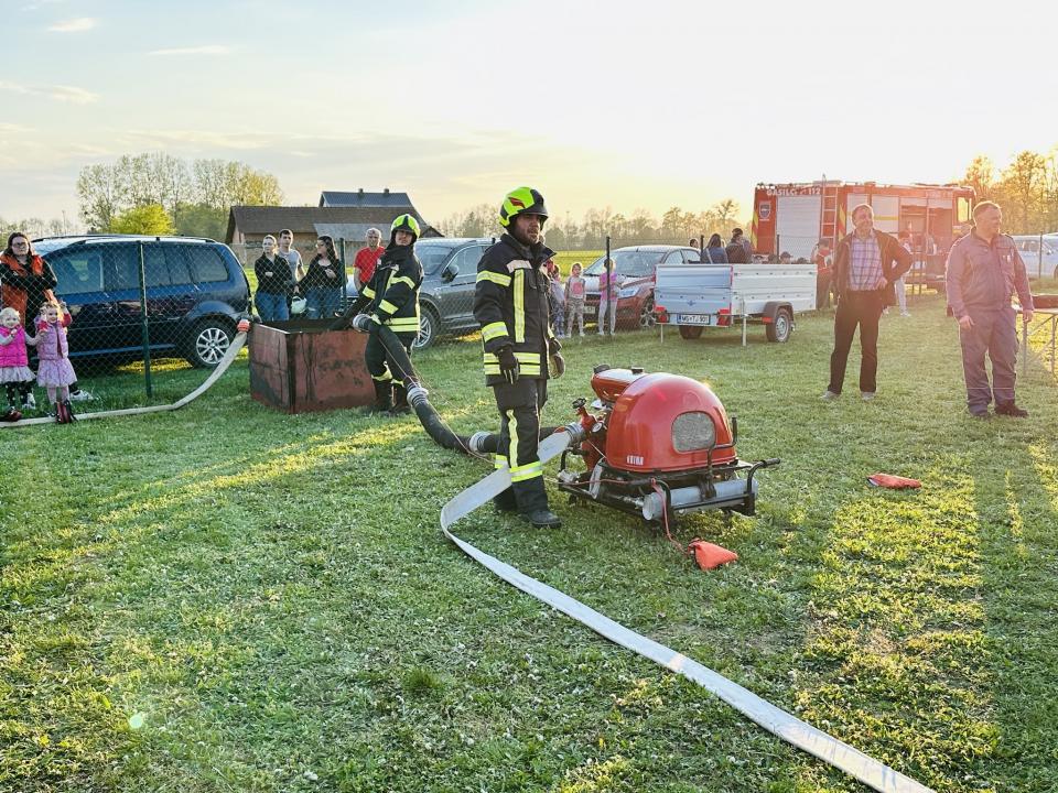 Operativni člani so uspešno opravili tudi preizkus z novo motorno brizgalno znamke Rosenbauer. Po njihovih ocenah nova oprema omogoča lažje rokovanje in učinkovitejše posredovanje.