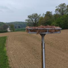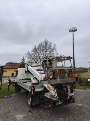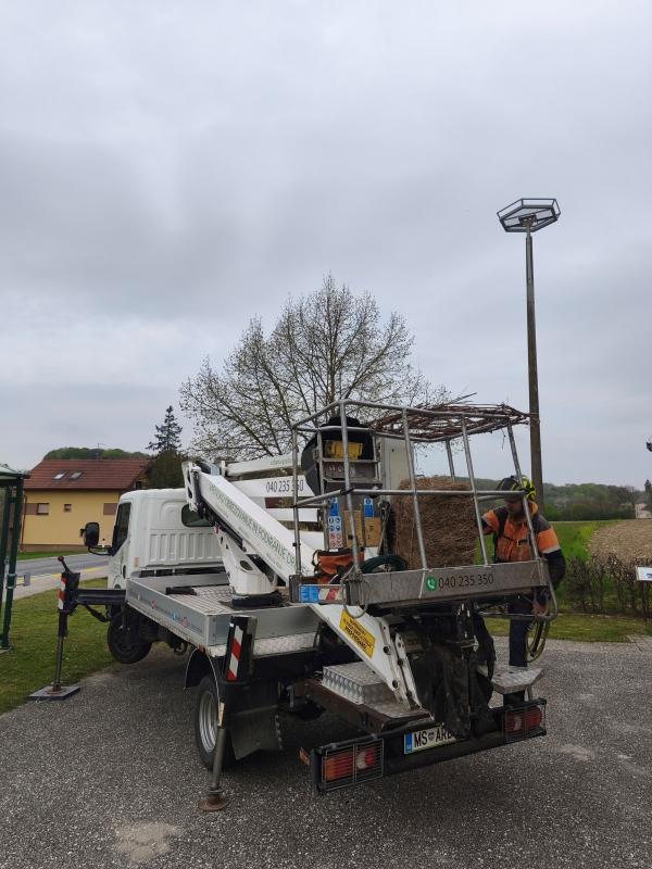 Zaposleni v Javnem zavodu Krajinski park Goričko so ob pomoči podjetja Urbano gozdarstvo Erdeljc na kovinski podstavek z drogom namestili ročno spleteno gnezdo. Drog je na tej lokaciji stal prazen že več let, zdaj pa so ga znova oživili z novim namenom.