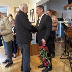 Ob tej izjemni življenjski prelomnici mu je zaželel predvsem zdravja, osebnega zadovoljstva, ustvarjalne energije ter številnih prijetnih trenutkov v krogu najdražjih. Ob tem je poudaril izjemen pomen njegovega ustvarjalnega opusa in prispevka k razvoju lokalnega okolja.